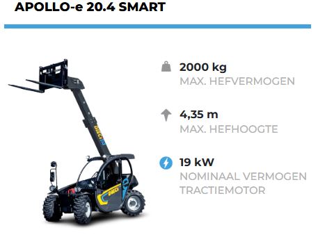 De Apollo 20.4 smart is een krachtige, behendige en nauwkeurig bewegende machine, ideaal op plaatsen met weinig manoeuvreerruimte.